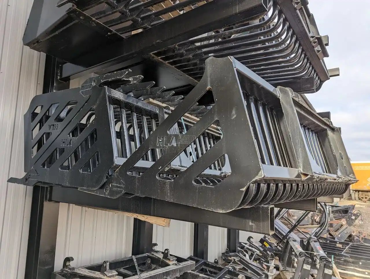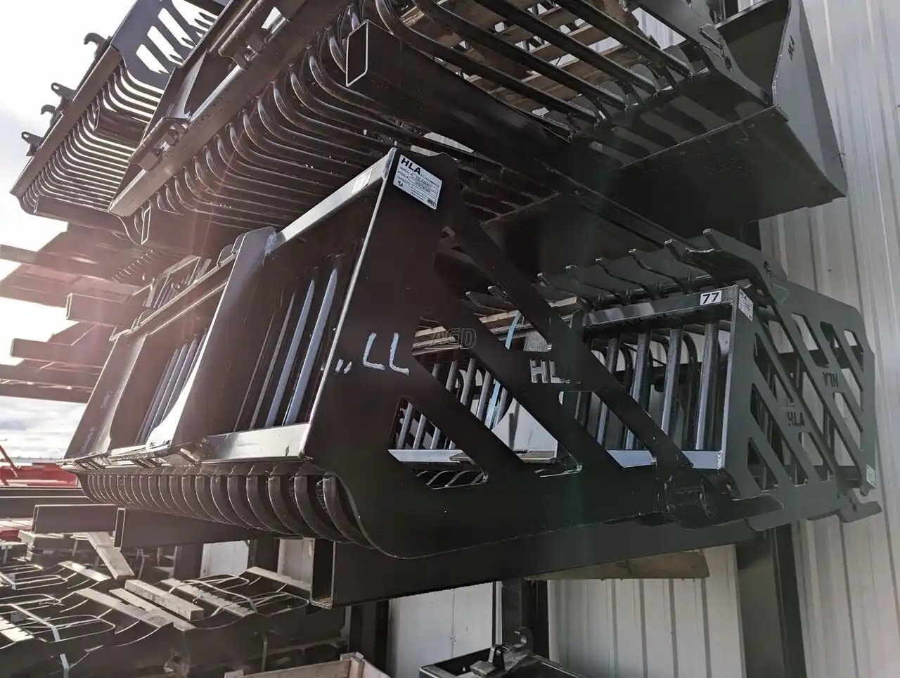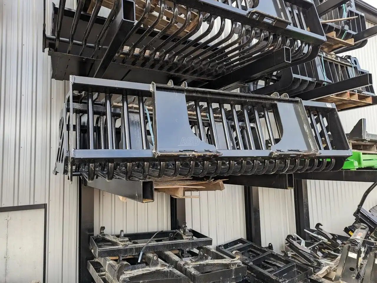 77" retainer style stone fork to fit universal skid steer. Many other sizes available in ALO quick attach also.