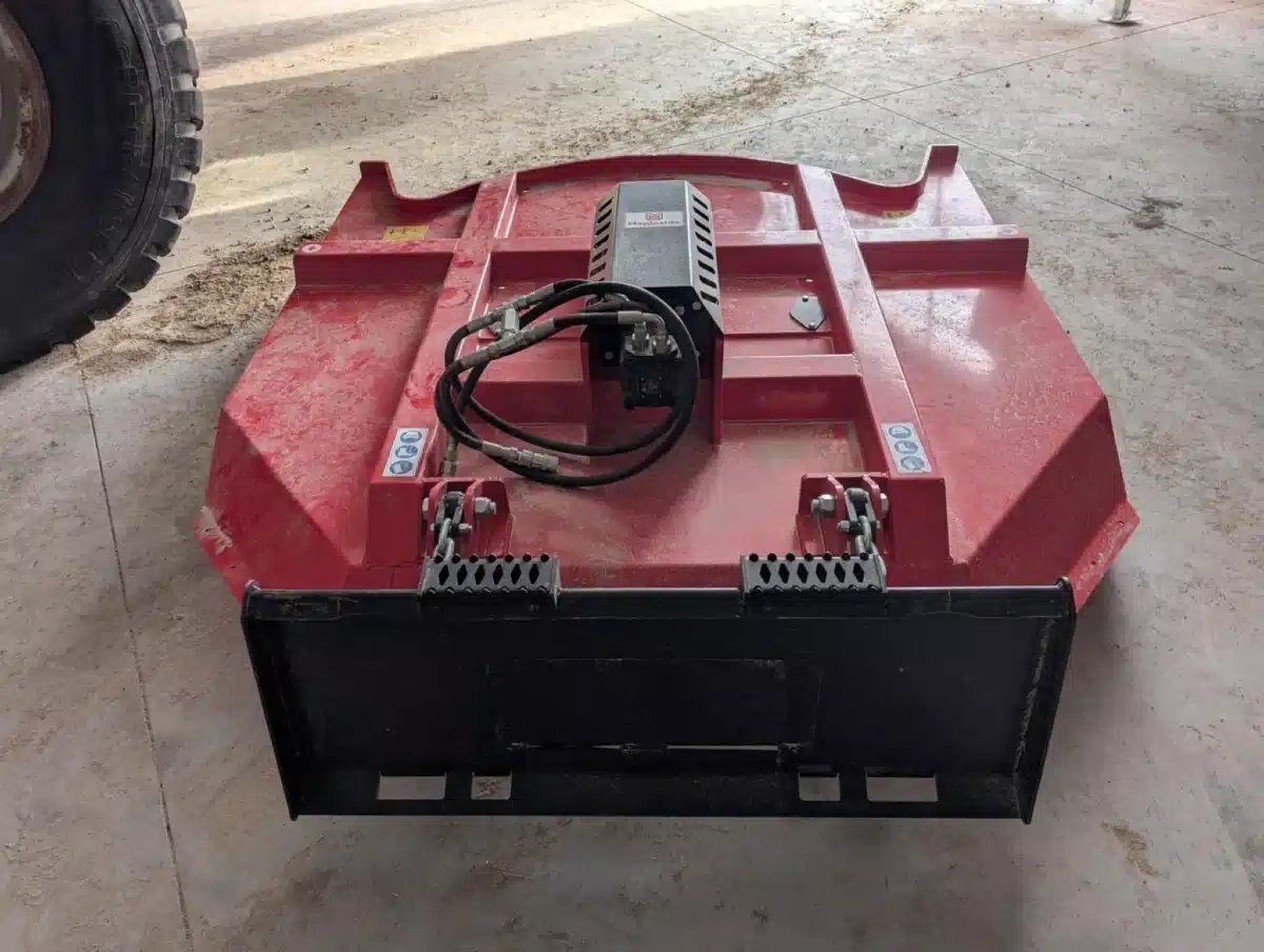Adjustable Hardened Skid Shoes 72" Cutting Path 78" Overall Width 3/16" Material for the Deck Floating Skid Steer Mount Plate Front wheel (Optional) 14 - 23 GPM Hydraulic Flow 3 Hardened Cutting Blades Hydraulic Relief Valve No Case Drain Required Comes With Hoses & Couplers Stock # 72RC-SSQA