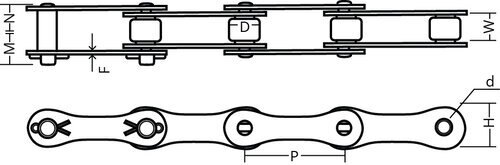 This type of chain is commonly used for transmission of mechanical power on many types of domestic, industrial and agricultural machinery. This chain is offered in economical offshore brands for easy to change drive systems. It is similarly available from high-quality North American brands for high use applications, such as balers, combines or elevator leg drives. These roller chains are available most commonly in 10’ rolls, but can be ordered in 50’ and 100’ coils.