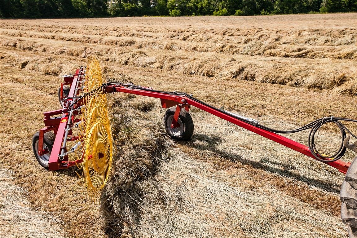 The new range of TR-S in-line trailed wheel rakes stands out from the traditional earlier range for its smaller transport dimensions and for being extremely easy to use and to adjust while working. The machine can be moved from the transport to the working position and back to the transport position from the tractor, using the hydraulic system. The machine’s sturdy design provides excellent performance both in terms of quantity and quality.