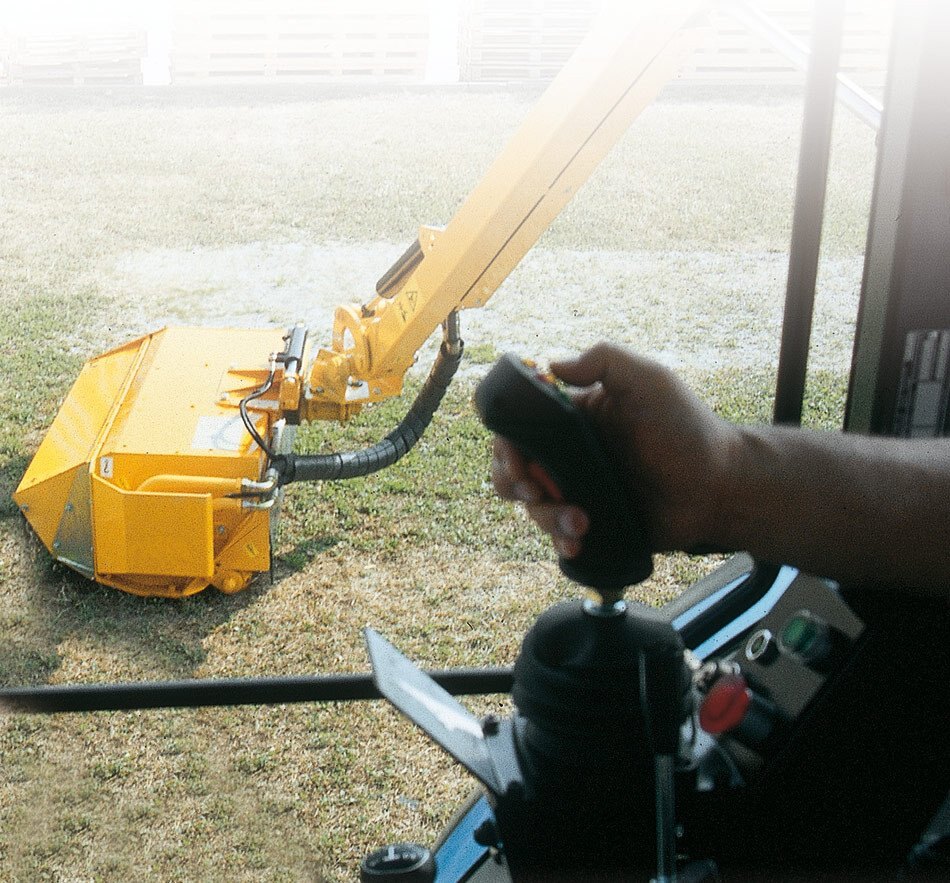 The TXV reach mower series which is a proven product for Ferri is designed for the municipal and ground care operators. The machine is equipped with a high power hydraulic system which includes cast iron pumps and motors coupled to a worm high torque transmission gearbox. Comfort is ensured by the “Plus” console with proportional electro-hydro-electric controls. The TXV hydraulic reach mowers combine two uses: traditional position of the flailhead or advanced position of the flaihead for better visibility.