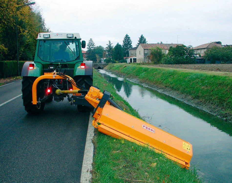 The central and offset mowers ZMTE, offers a wide range of working widths and a slection of different kinds of flails, to meet the farmers and landscapers requirements. The external positioning of the gearbox transmission unit allows the ZMTE series to have a greater working depth, which is an advantage when being used on the banks of canals, and ditches. The “FARMING” version is equipped with hydraulic and mechanical devices for ensuring the best conditions during the transport of the machine. Features include FERRI reliability, advanced technology and safety.