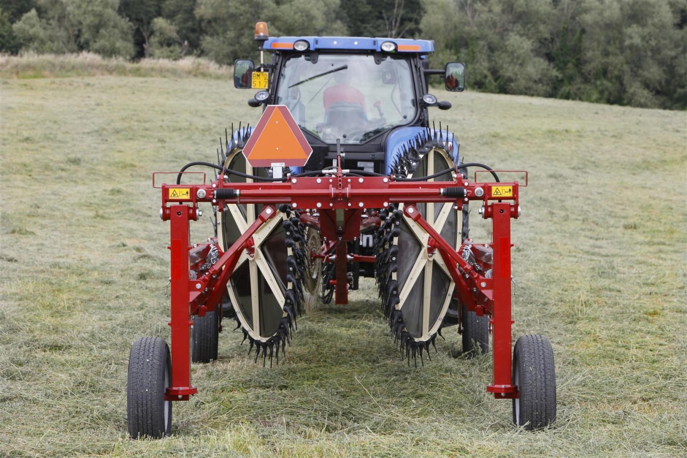SITREX MKE-PRO series trailing wheel rakes are the best choice for the raking of hay. Their construction is designed for high-speed operation on any type of field and with any type of hay, always ensuring an excellent haymaking quality. The range includes six models with raking widths from 21’ to 37’ meeting the requirements of enterprises of any size. When all hay has been collected, the machine can be closed rapidly to the driving position, thus minimizing operation times. The whole frame is composed of thick, heavy-gauge tubing, including wheel supports, which decreases working costs and enhances machine durability.