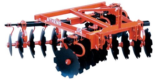 The front and rear frame of the Athens 37 is constructed of angle and steel tubing, welded into a unitized assembly for strength and durability.  The rear frame can be pinned in the up position to increase the weight on the front gangs for the initial pass.