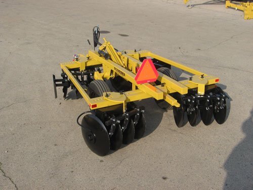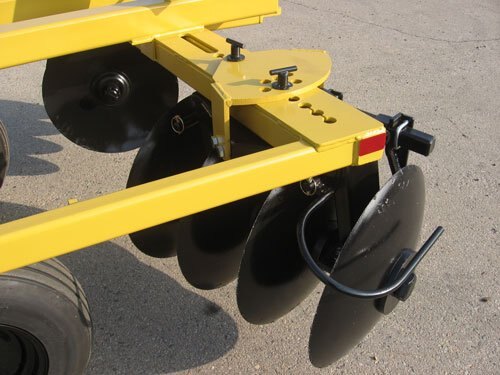 Each disc comes with standard features: 24" or 26" x 6mm disc blades on 9" spacing 6x4 main frame tubing with front to rear taper design Greaseless Rockshaft design Hose holder and jack stand Adjustable gangs; 0-30 degree range 1-3/4" axles with spring tension washers Trunnion mount self-aligning triple lip bearings Bearing wear plates Middle buster 3x8 hydraulic depth control cylinder with hoses 9.50x15" implement rib tires with removable spindle.
