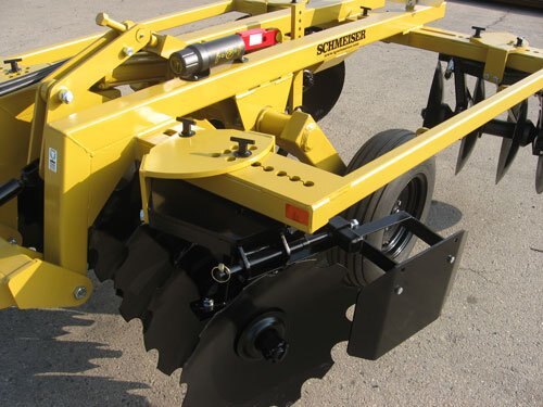 Standard Features: 24" x 5mm disc blades on 9" spacing 4x4 main frame tubing Adjustable gangs; 0-30 degree range Greaseless Rockshaft system 1-3/4" axles with spring tension washers Trunnion mount self-aligning triple lip bearings Bearing wear plates Hose holder and jack stand Middle buster 3x8 hydraulic depth control cylinder with hoses 7.60x15" implement rib tires width removable spindle.