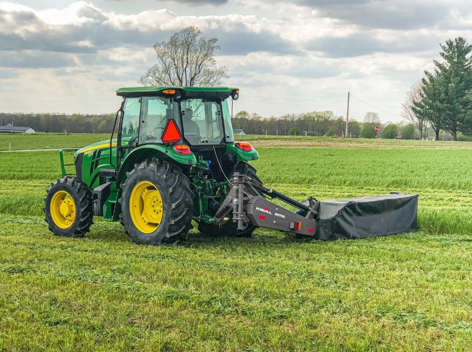 Ideal Equipment's Disc Mower is the best option for efficiently cutting hay. This implement expertly mows through tough, thick crop with a series of discs to give you a clean, even cut over rough ground with no clogging. Each oval shaped disc with two knives gives you maximum overlap and blades are easy to remove and replace.