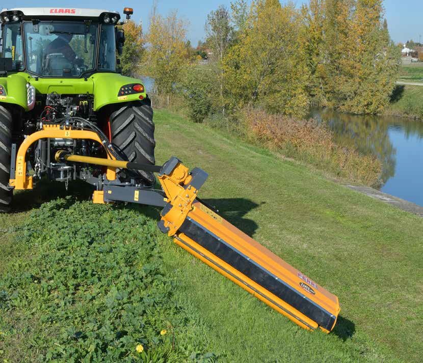 The new model of offset/in slope mowers ZMTE PRO 1800, is the ideal solution for the cleaning of edges of plots of land, ditch banks, and generally green areas. The external positioning of the multiplier unit allows to operate totally outside the tractor track in absolute safety, suitable for tractors from 60 to 80 HP. As standard, the ZMTE PRO 1800 model is equipped with the DOMEX subframe to avoid damage to the frame itself and the innovative mechanical shock absorber to protect the whole machine in case of impact against obstacles. Recommended for grass, bushes, shrubs and wood up to 4 cm in diameter.