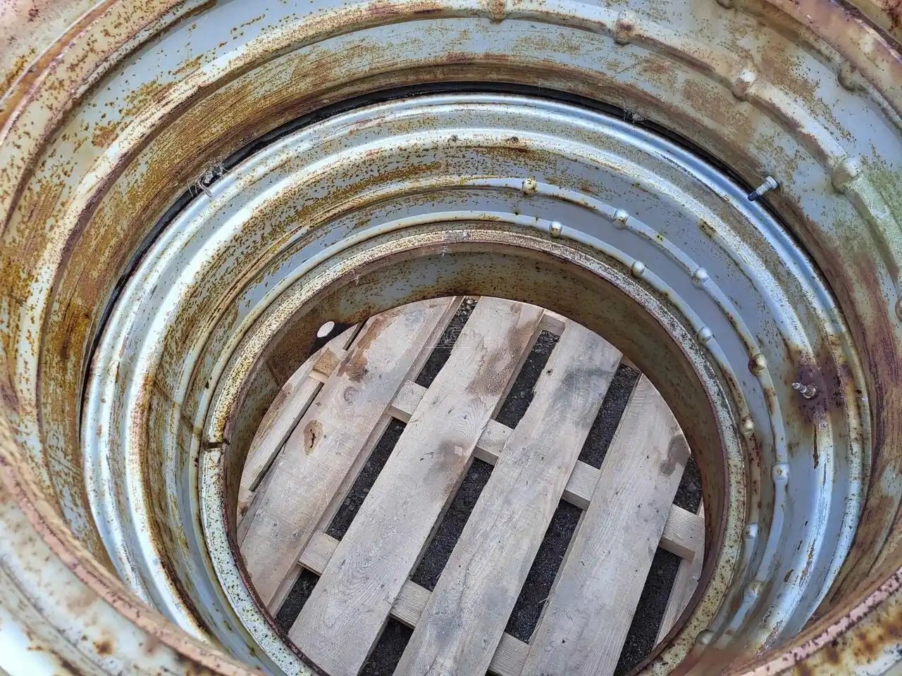 30%, small cracks in the tread, grey T-Rails, 8" S, hardware Stock # BR02563