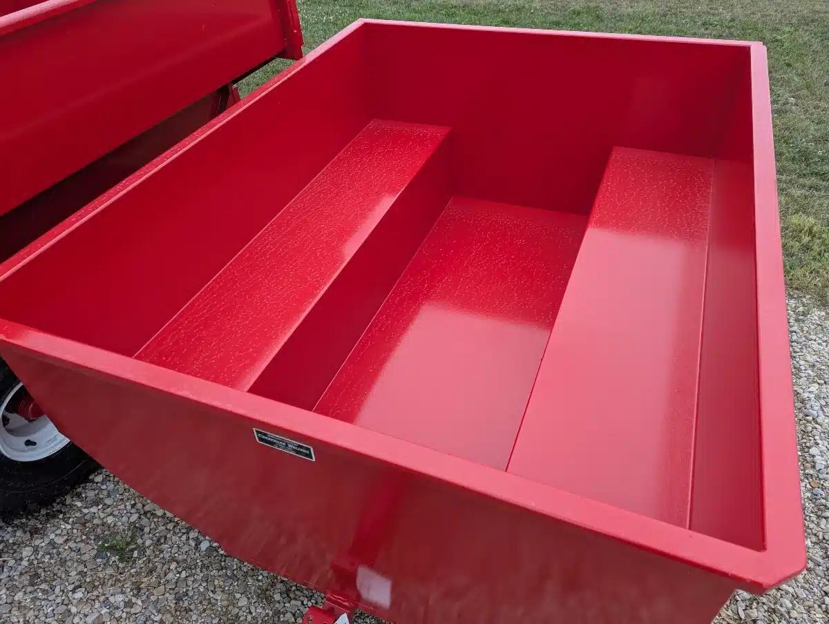 22x11-8 tires, 5 bolt hubs, 42" wide x 54" long, bench on inside, lift out tailgate