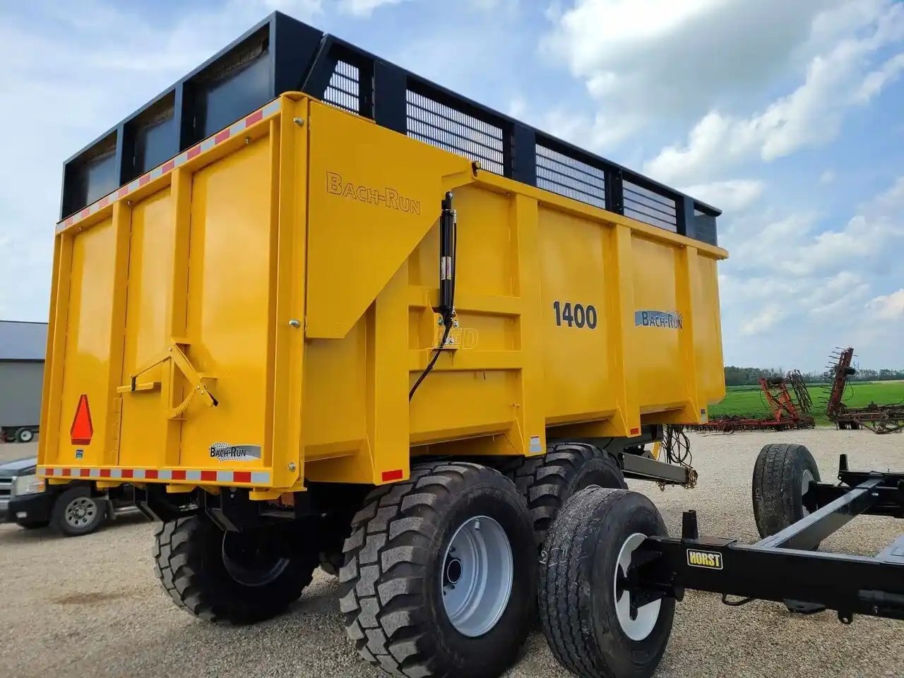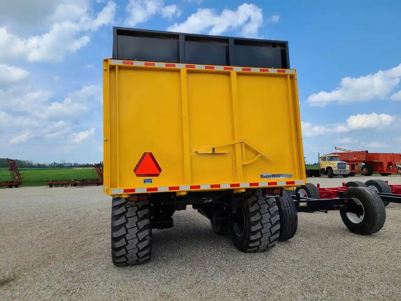 Box is 9'x20'x6' inside dimensions w/ a 18" silage extension, 25 ton hoist, 4 wheel hyd. drum brakes, new Tianli 650/55R26.5 AGRO radial tires, lights, front sliding panel, 16,000 lbs. hubs, 3/16" floor, 10 gauge sides, (recommended 180-200 hp tractor)