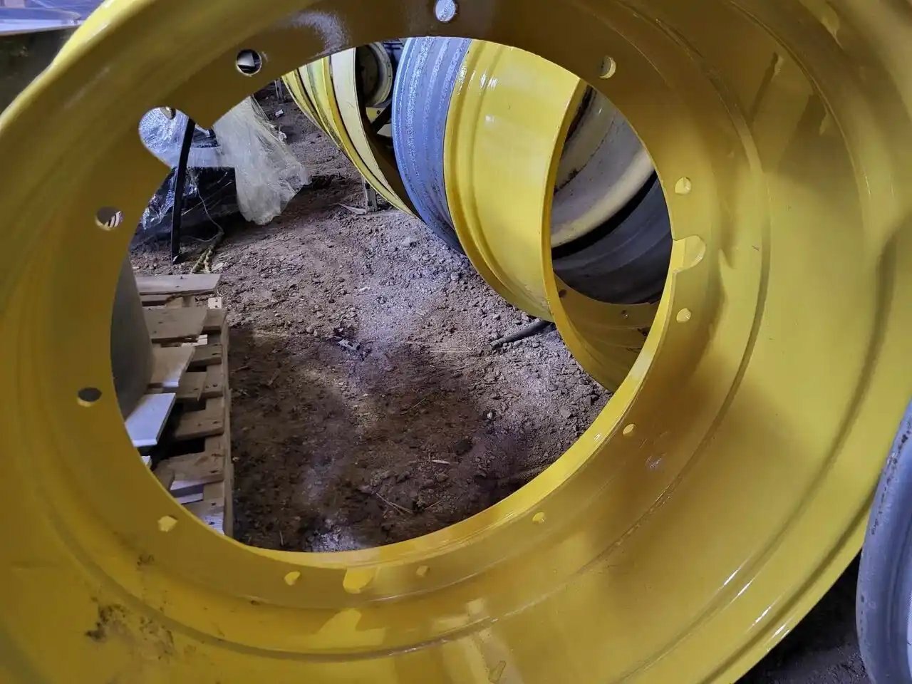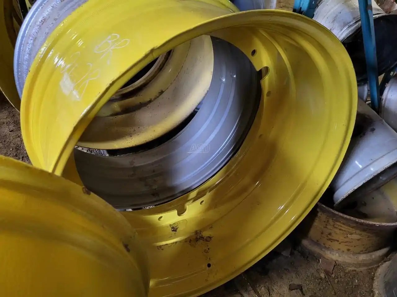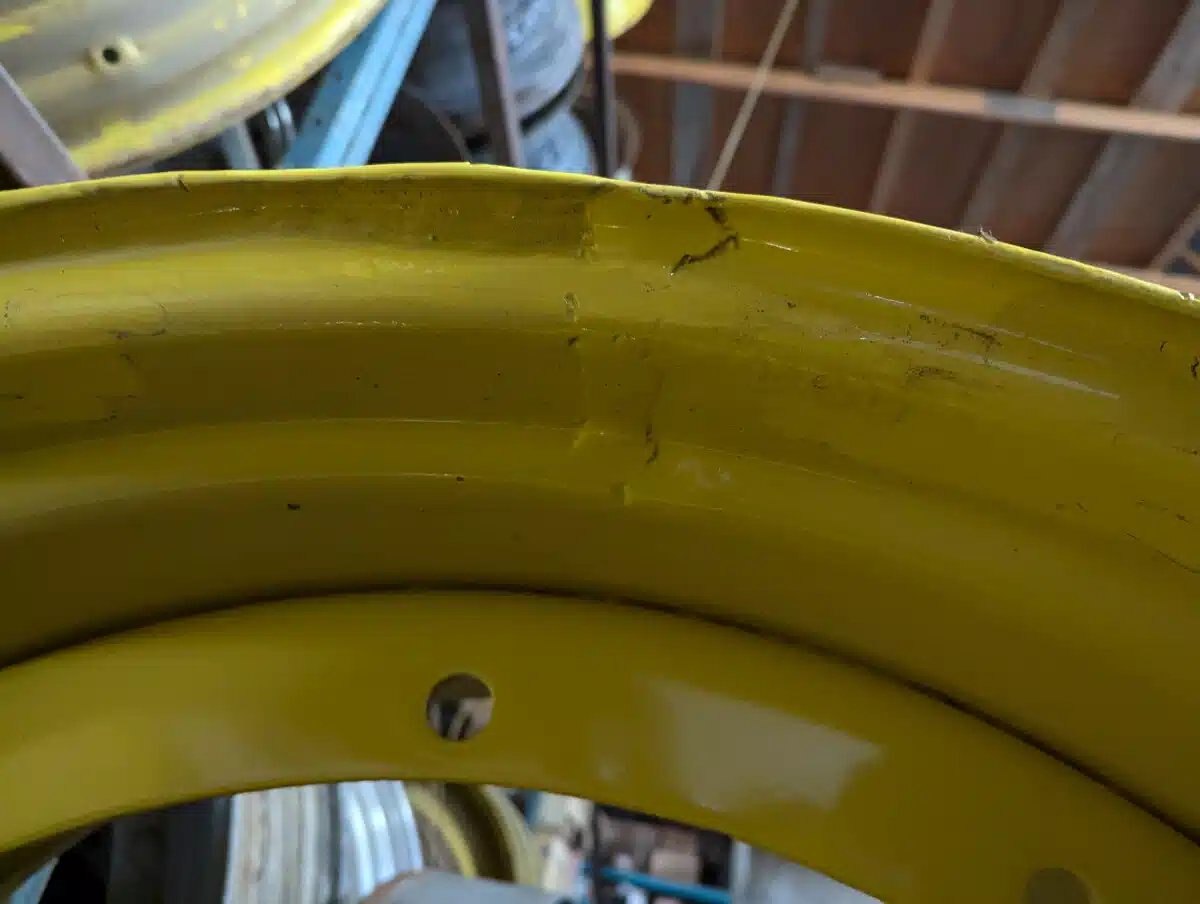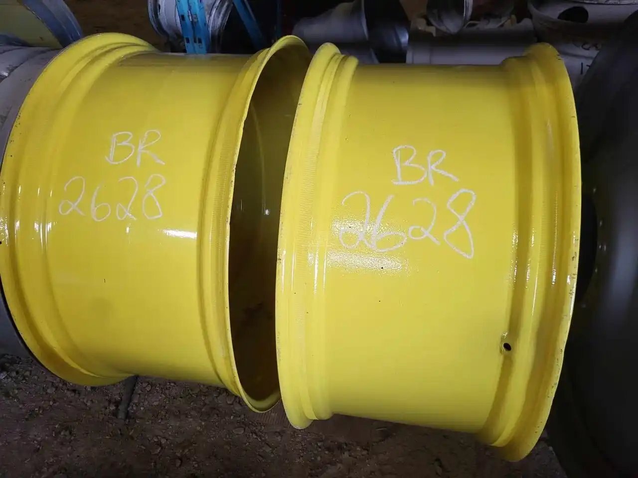 JD stub disc 12 hole rim, pair., one rim has been repaired may require a tube. Stock # BR02628