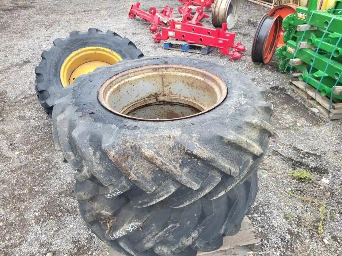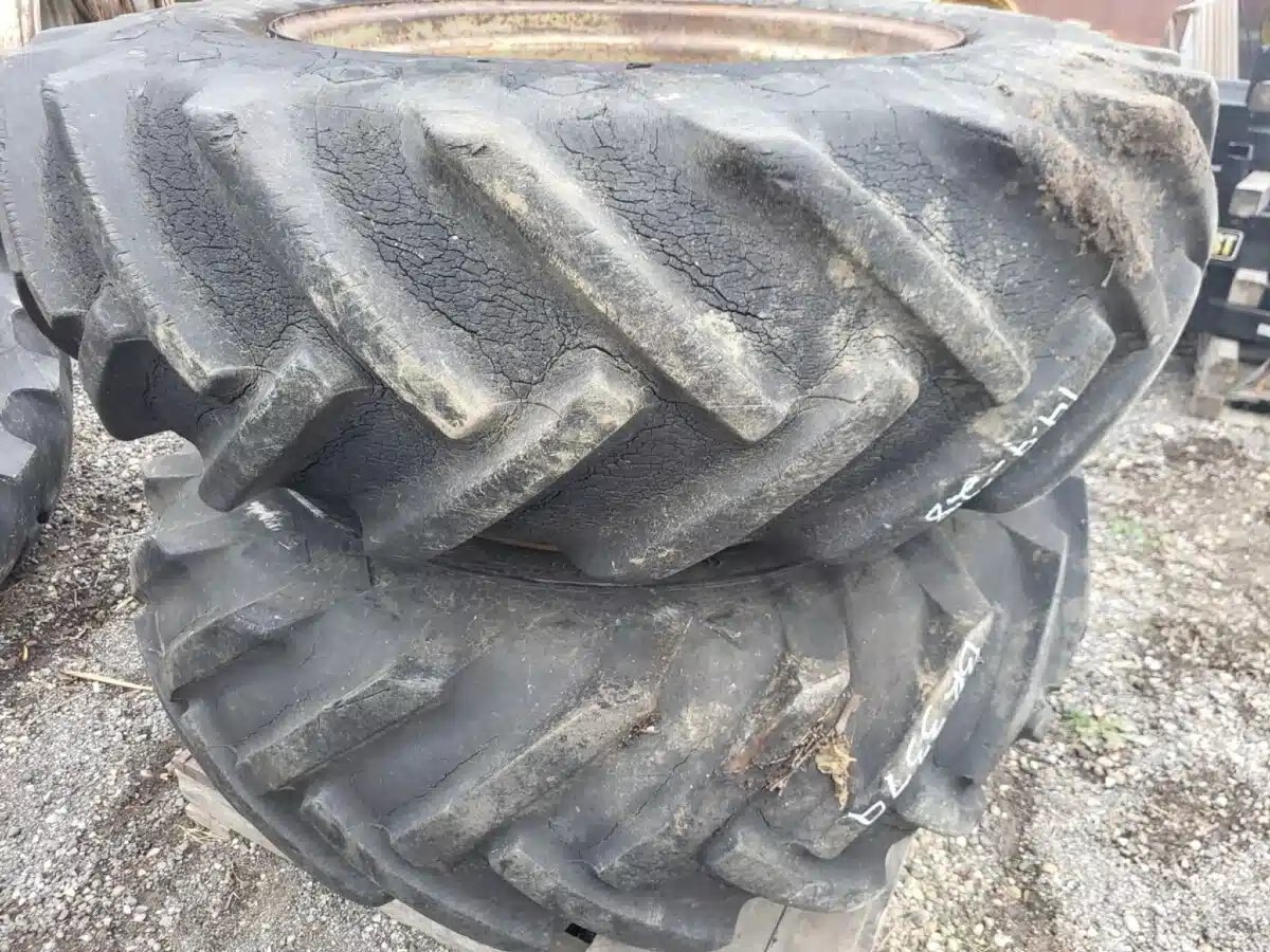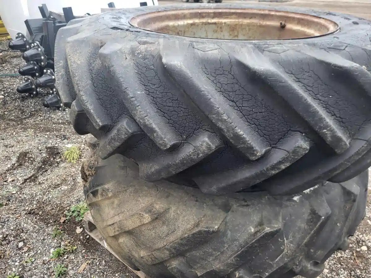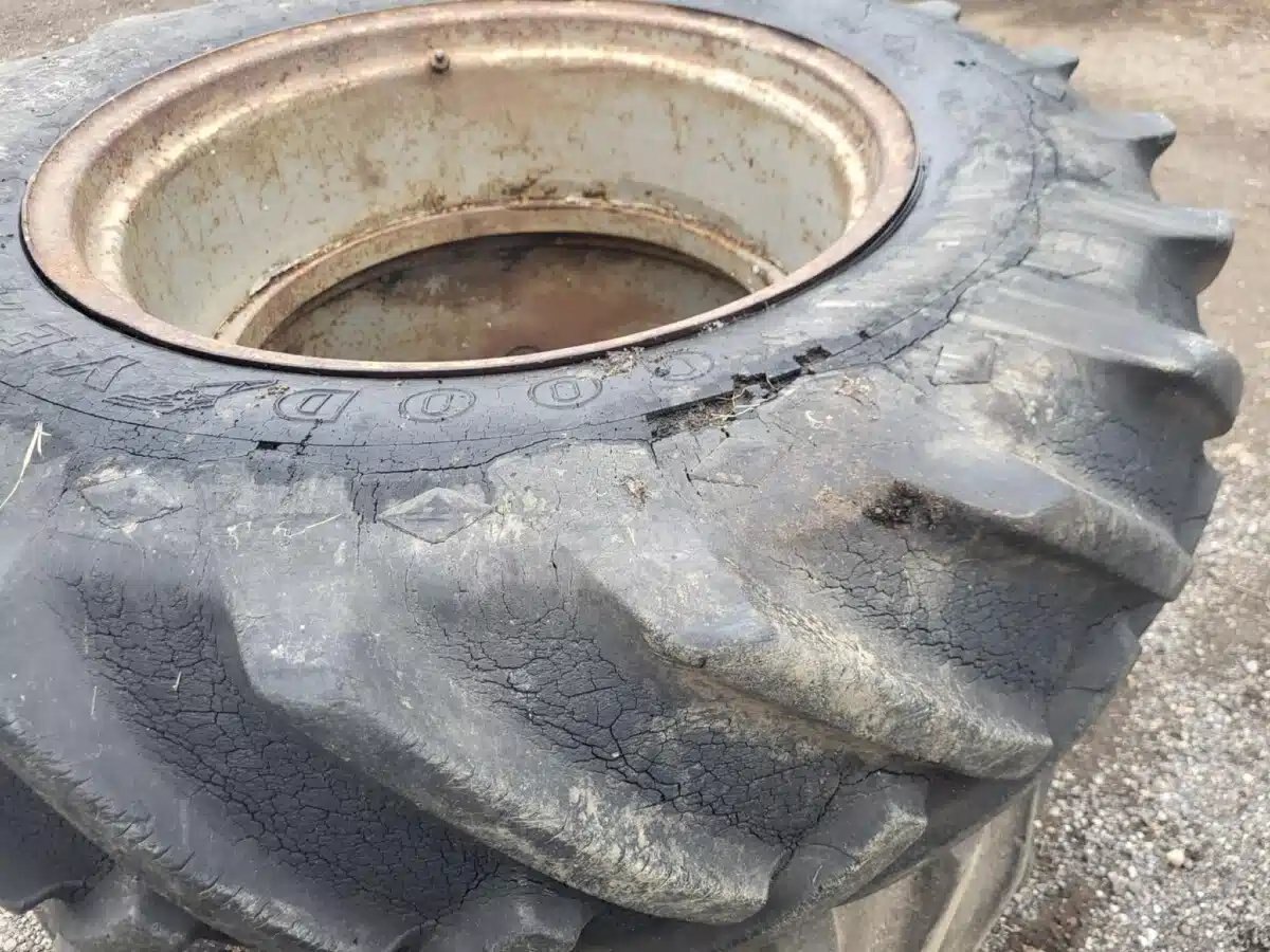 hardware, 8" spacers, lots of cracking, holding air, 40% tread Stock # BR03379