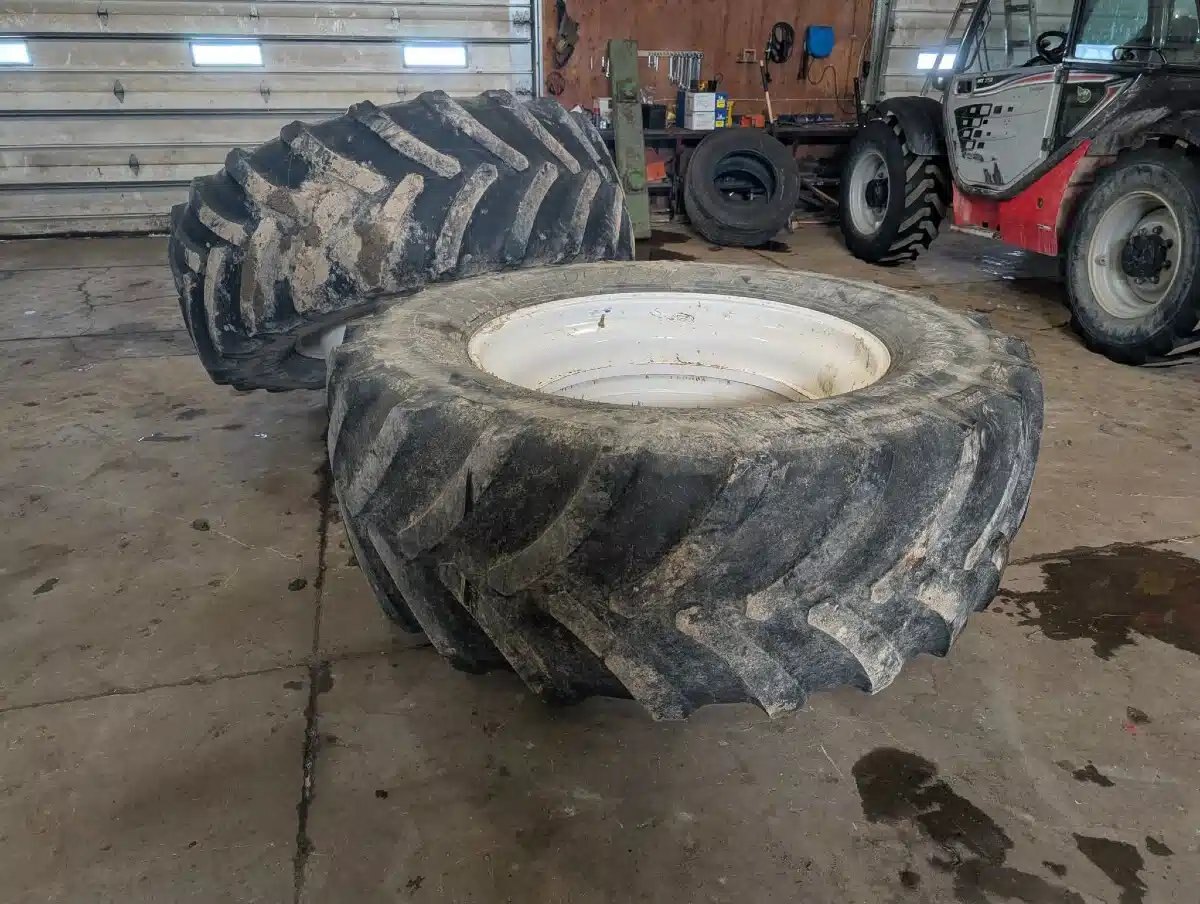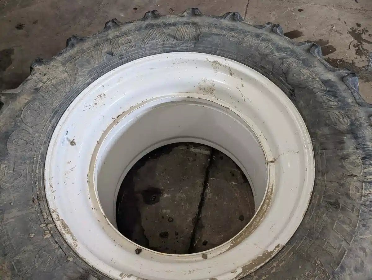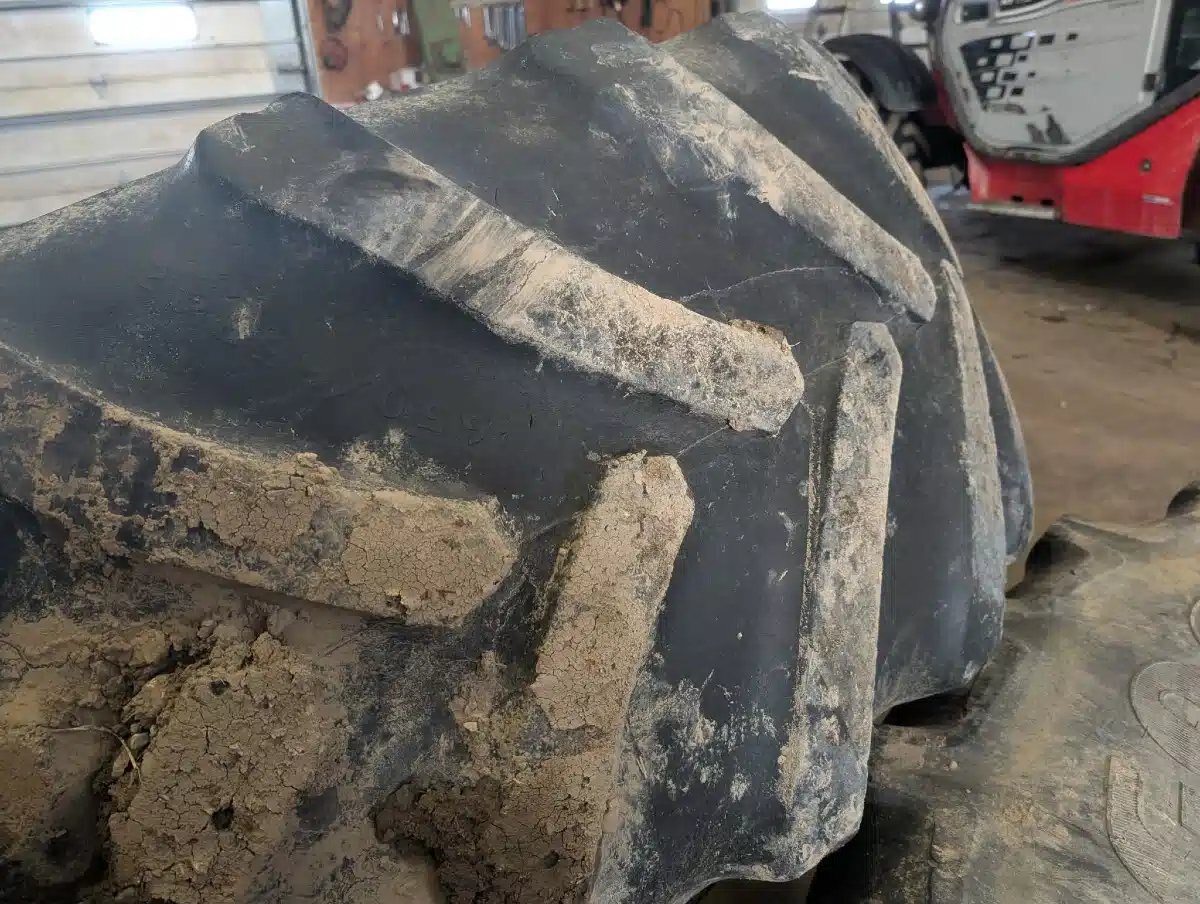 25%T, white T-Rail Rims, weathered, 1 has crack in sidewall Stock # BR03461