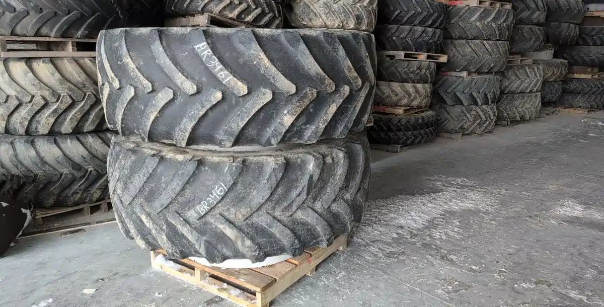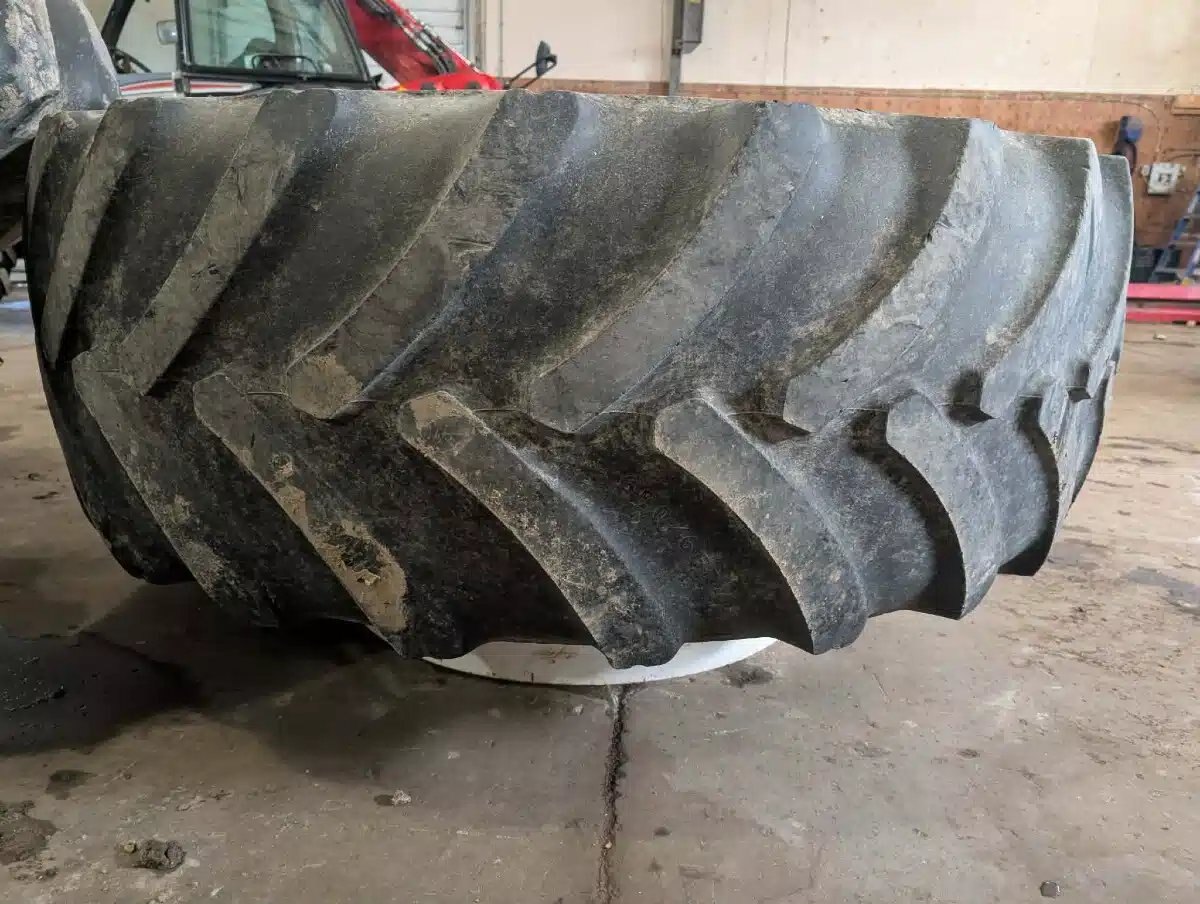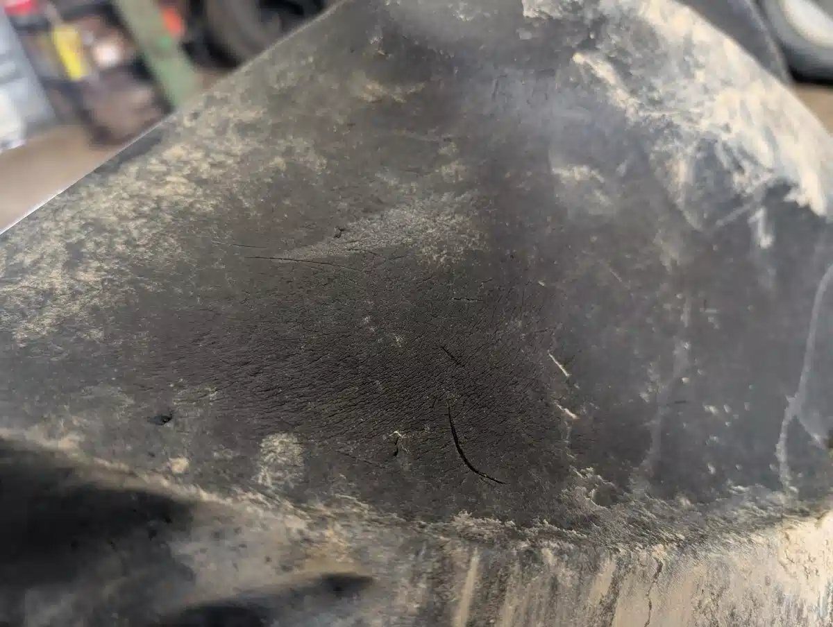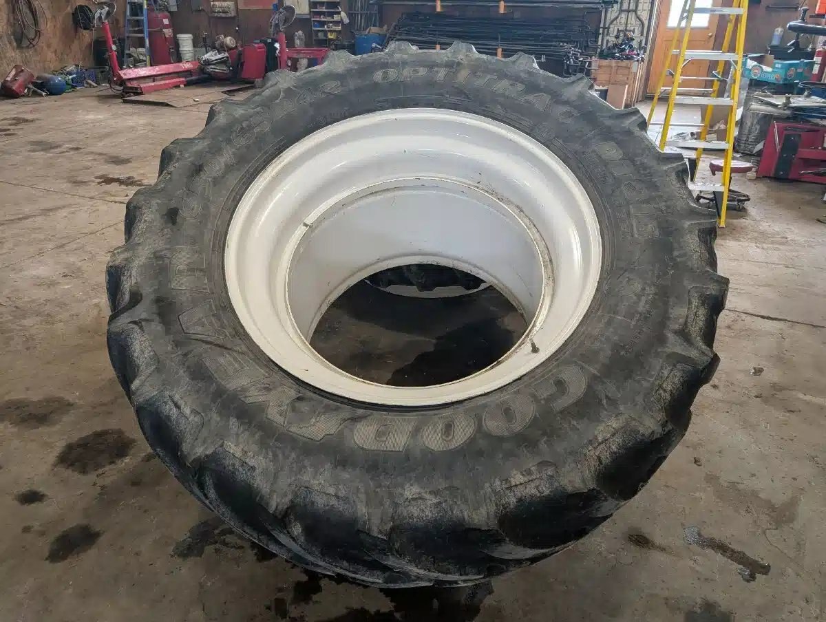 25%T, white T-Rail Rims, weathered, 1 has crack in sidewall Stock # BR03461
