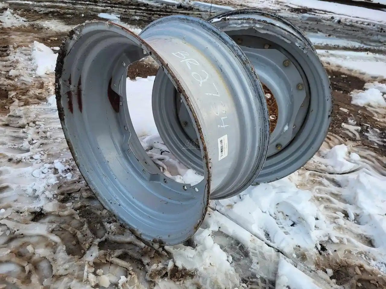Grey waffle rims (1 has L10 bolt center 11" P) find 2nd center Stock # BR02734