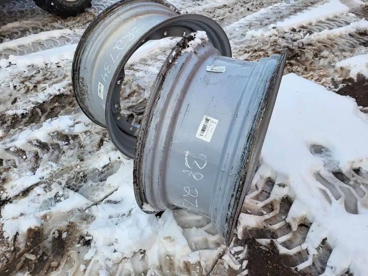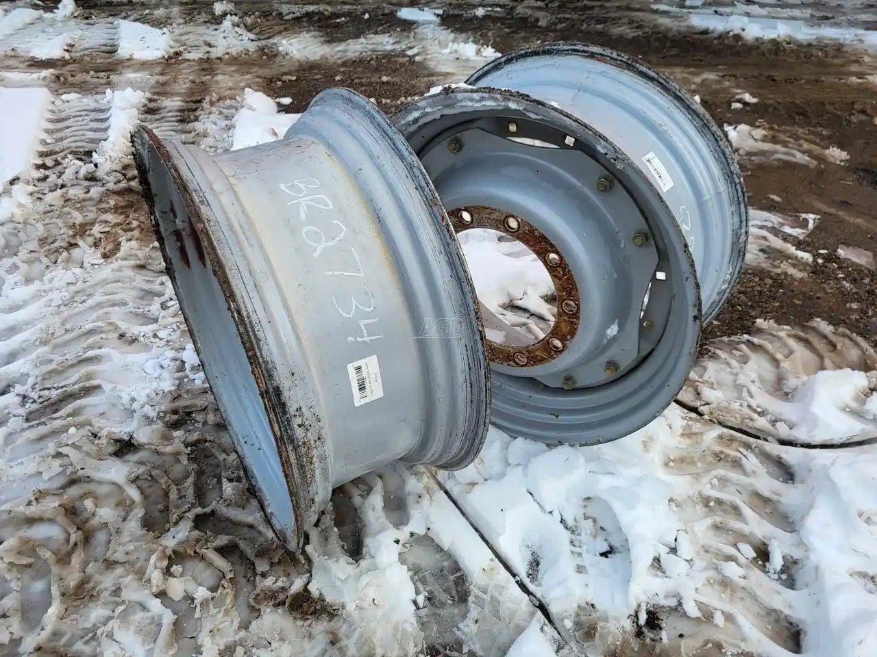 Grey waffle rims (1 has L10 bolt center 11" P) find 2nd center Stock # BR02734