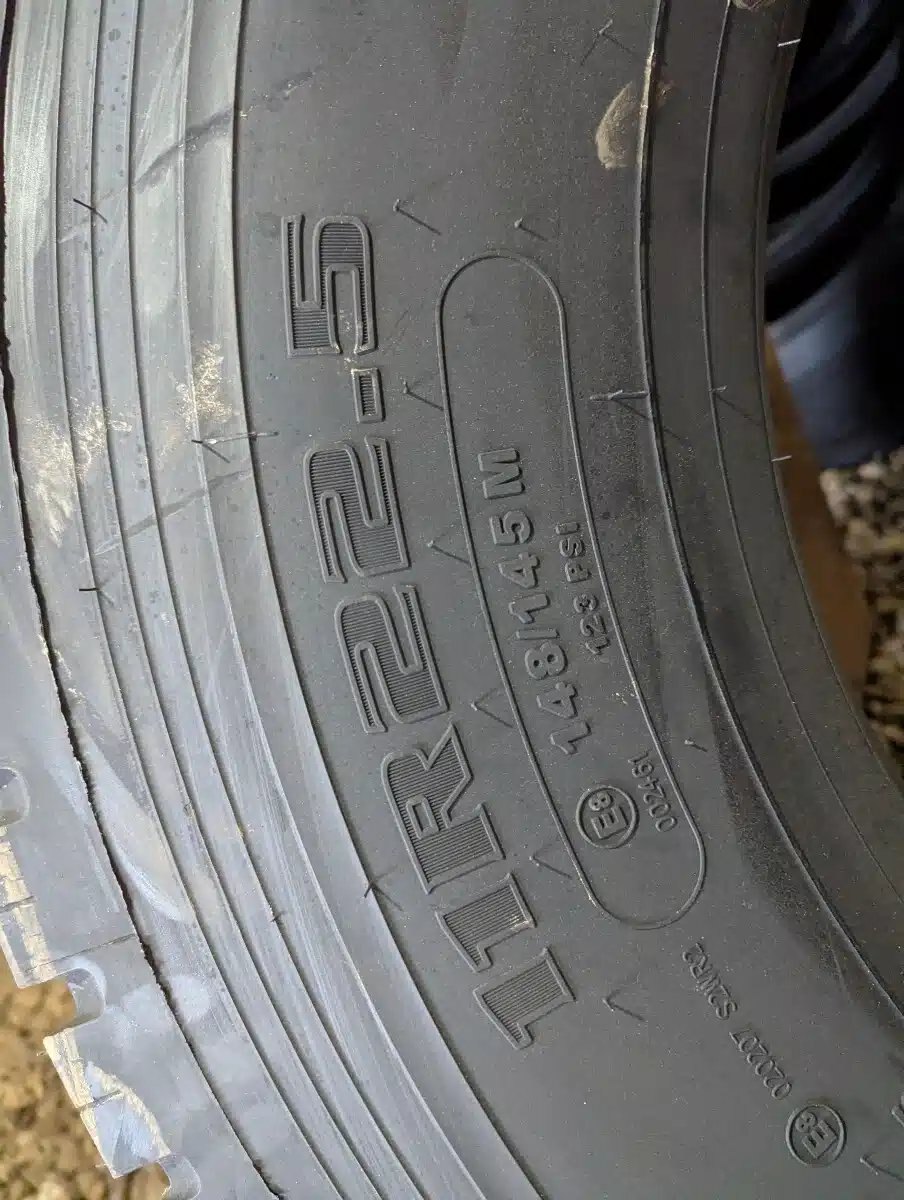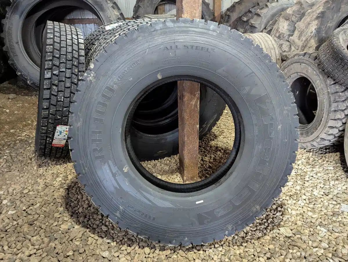 RH100 pattern, open shoulder drive tire, radial, 148/145M load speed index, price per tire.
