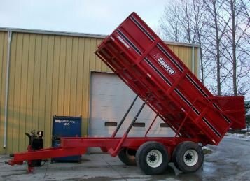 | Super-Tilt was designed and built with versatility in mind. With large self opening rear doors and a 47 degree tilt, the Super-Tilt is a natural choice for today's forage collection. Lock down the rear door and open the grain chute and you have a large capacity efficient alternative to conventional gravity wagons all in the same unit. With capacities from 14 to an amazing 23 tons, these dumpers can take whatever you can throw at them - it's no wonder they call them Super-Tilt. |