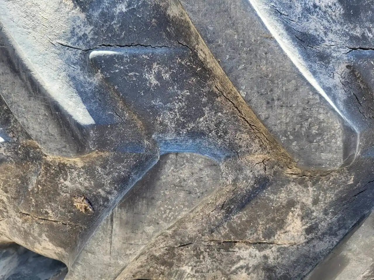 25% tread, yellow L 10 bolt rims, pair, weathered, cracking Stock # BR02250
