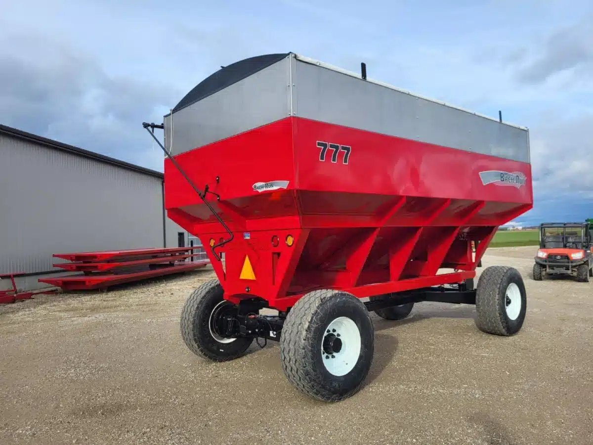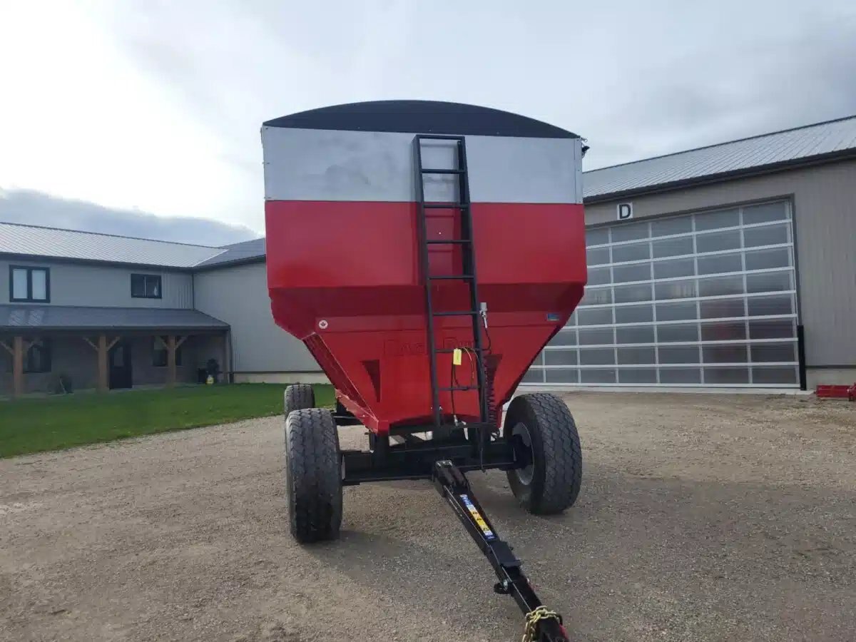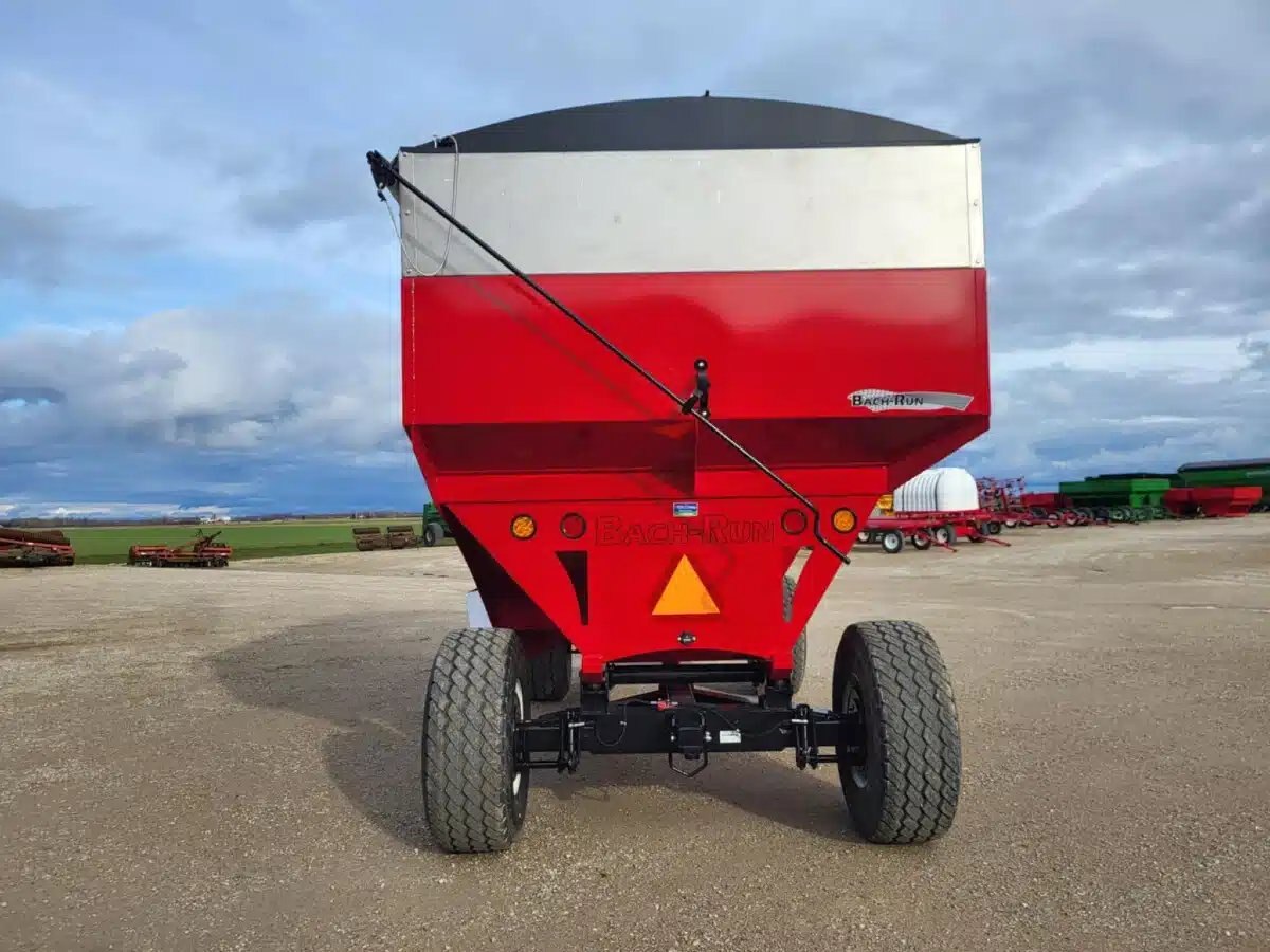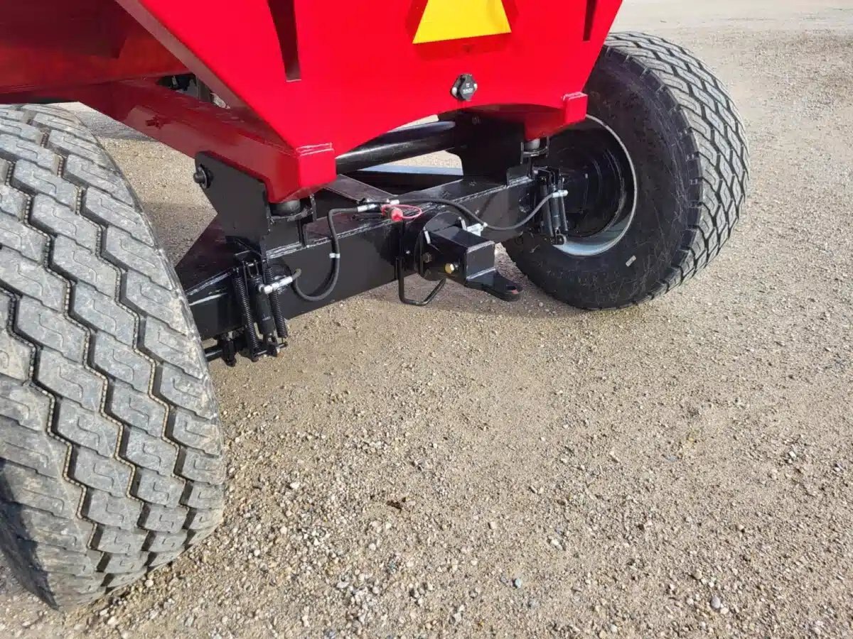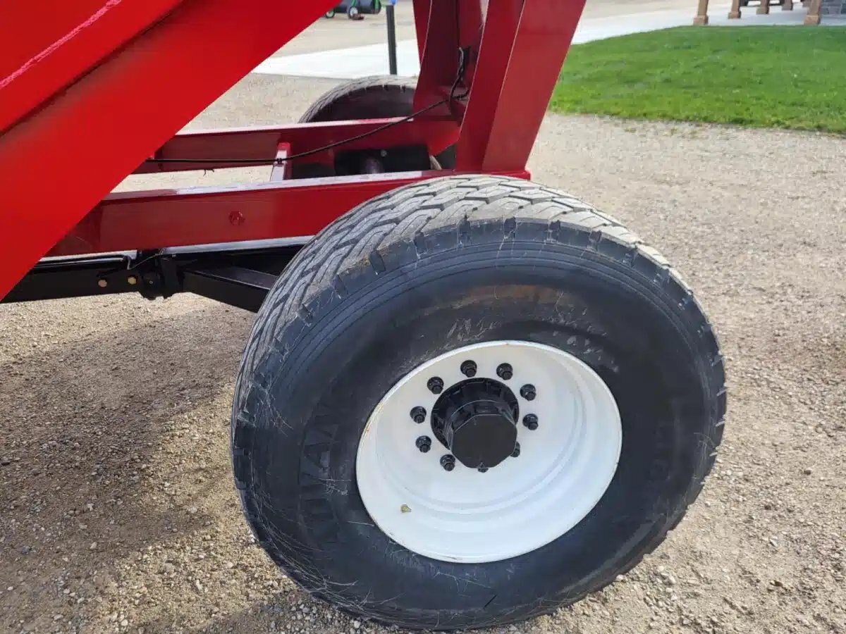 800 bu stainless, 25T, 2 wheel hyd. drum brakes, sulock style roll tarp, LED lights, new 445/65R22.5 tires, box sits on 8 rubber springs, spring balancer, safety chain & SMV sign. Available in Red, Green, Black, Blue, Orange & Yellow